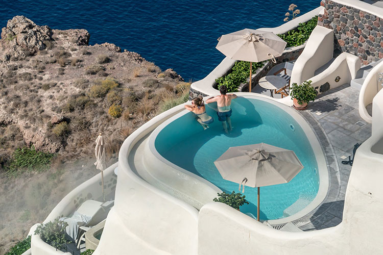 Atlantis is a distinctively impressive luxury 5 star hotel with Caldera view in the narrowest point of Santorini in Greece. Like a fine diamond, this majestic luxury hotel rests on a natural volcanic plateau in the picturesque village of Imerovigli and near the Unesco Heritage Village of Oia. Atlantis 5 star boutique hotel in Imerovigli, Santorini is a luxury retreat with an unrivalled sea view of the azure Aegean Sea and the volcanic Caldera. Nestled in Santorini’s delicate neck in the popular village of Imerovigli, this inimitable 5 star boutique hotel in Santorini, Greece offers a sublime luxury hotel experience in the mostintense natural surroundings.